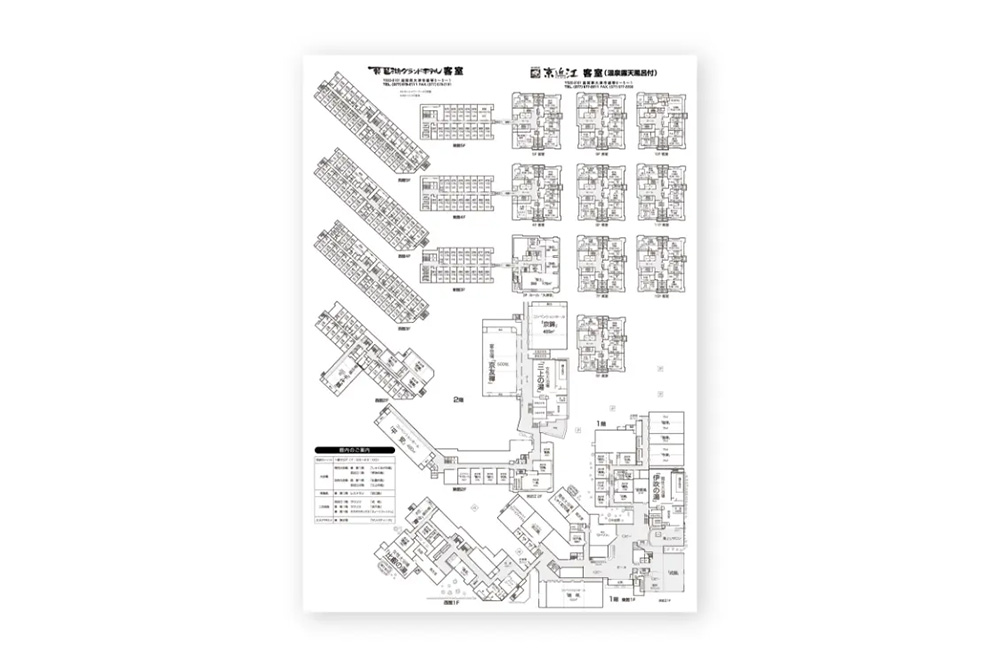 当社では、こうしたフロア案内の制作を、施設の用途や雰囲気に合わせてデザインから一貫してご提供します。わかりやすさと使いやすさを追求したフロアマップで、お客様の施設運営をお手伝いいたします。