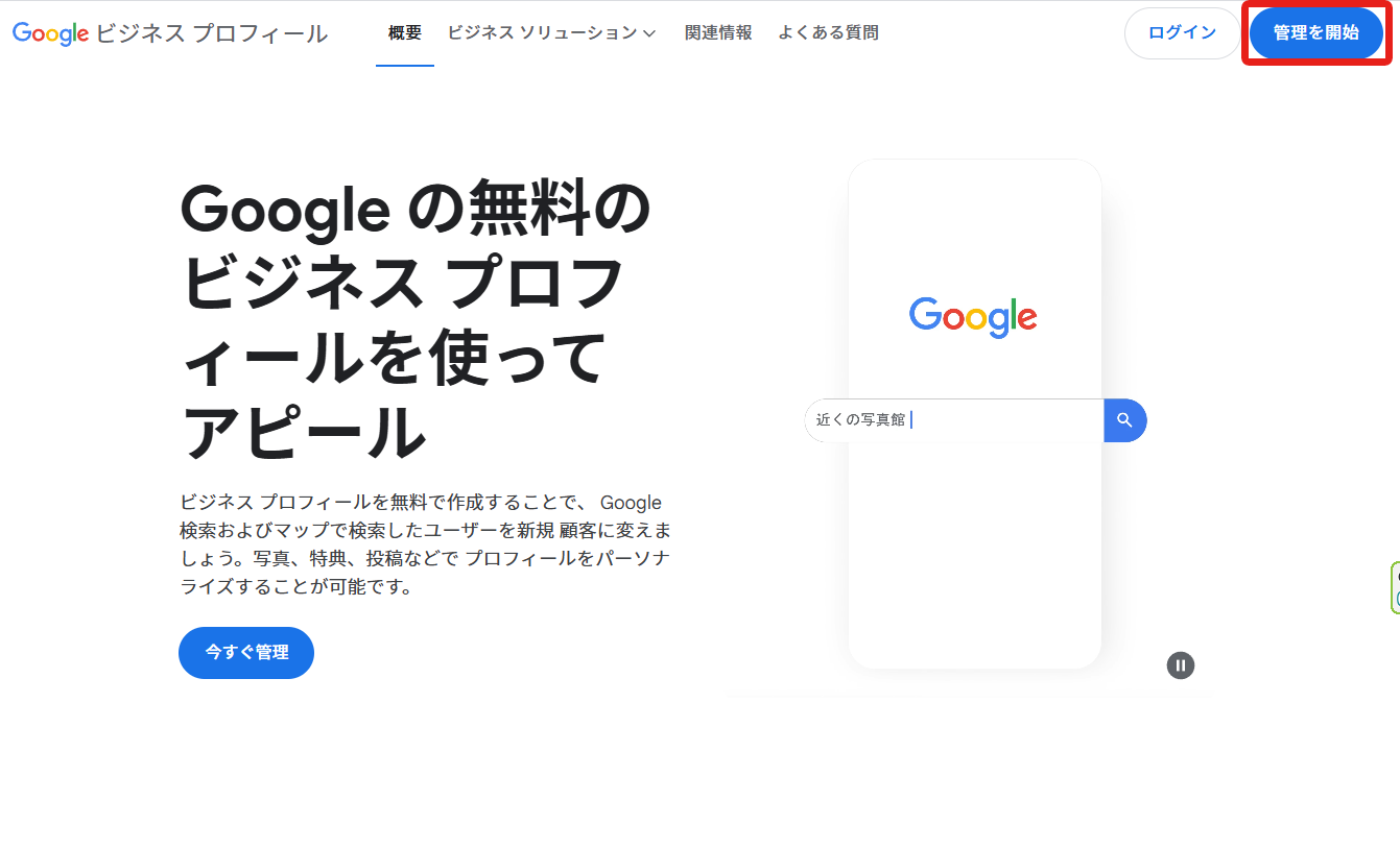「管理を開始」ボタンをクリックします。