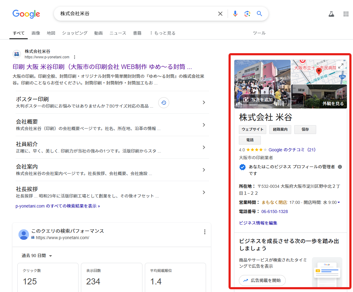 ナレッジパネルは検索結果ページの右側に表示される情報ボックスで、企業や店舗に関する基本情報を目立つ位置に配置します。ここに表示される情報が多く、写真が綺麗で印象が良ければ、ユーザーからの信頼を得やすくなるということです。