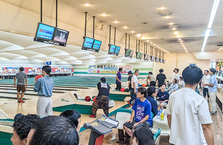 記念パーティーの前に10数年ぶりとなるボウリング大会もお取引先のダイドーボールさんで開催し、みんな久しぶりのボウリングでストレス発散、コミュニケーションアップと大盛り上がりでした。