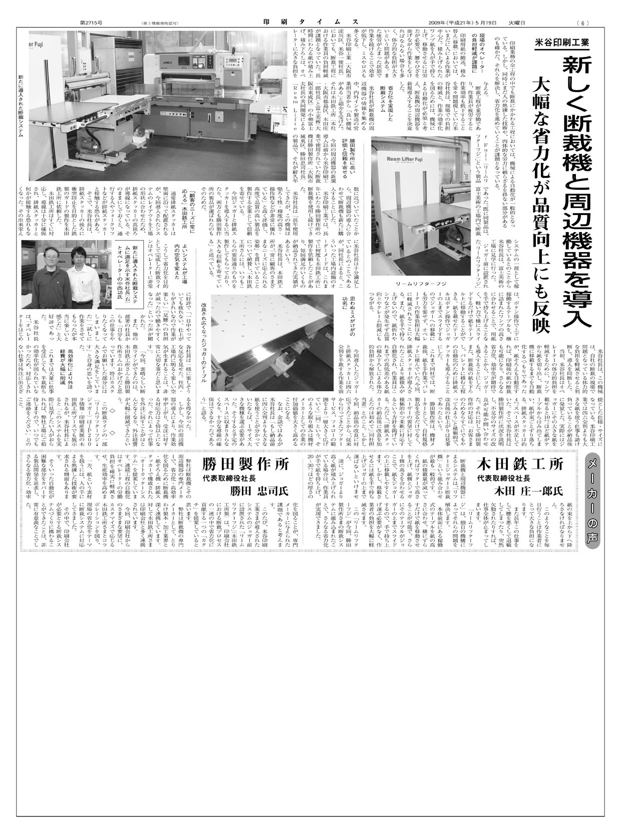 「印刷タイムス」にて断裁機と周辺機器を導入した件が掲載されました。