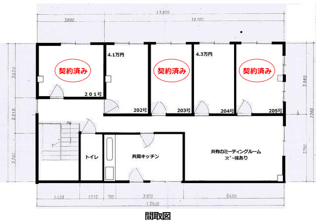 阪急十三駅から徒歩10分の場所にある当社の向かいにあるシェアオフィスです。ウェブデザイナーやDTPデザイナー、もちろんその他の業種の方も大歓迎です。特に独立自営業の方や、今までご自宅などで仕事されていた方にお勧めです。5つ部屋があり、現在2部屋の借主を募集しております。
