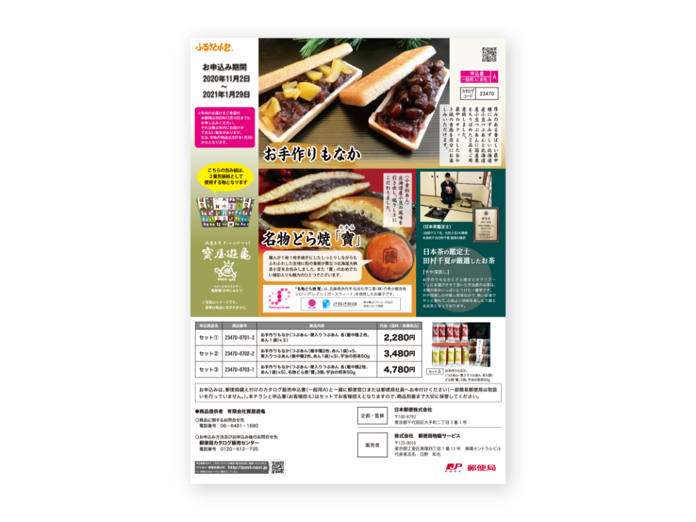 和菓子を製造販売しているお店の通販用チラシです。おいしそうな写真を可能な限り大きく掲載できるよう心がけました。