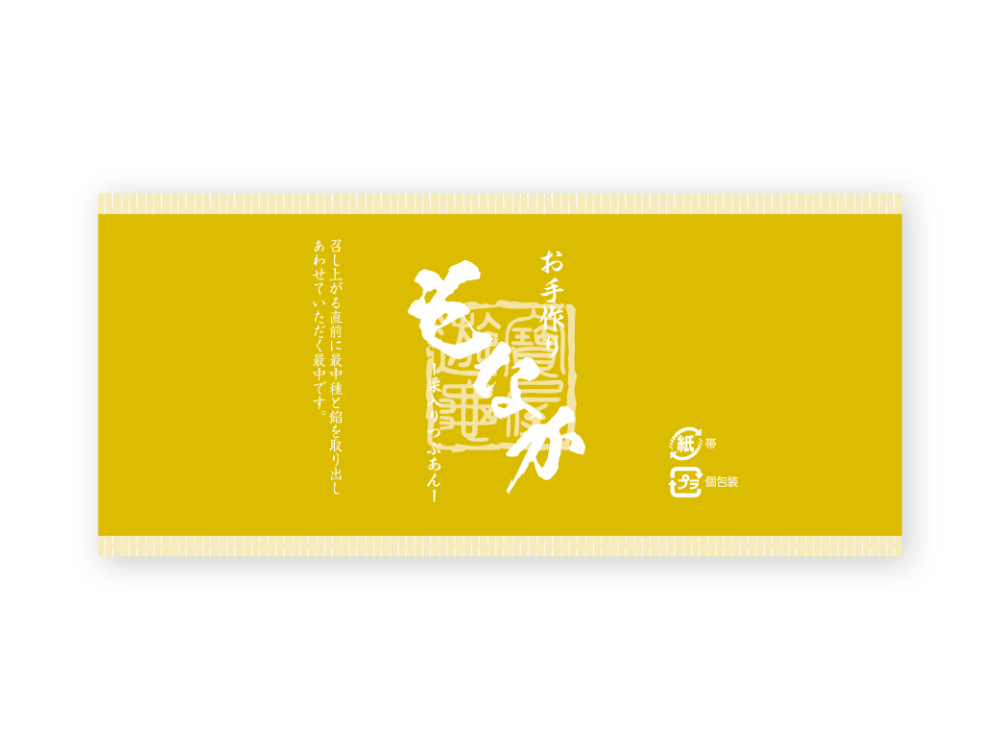 現行のパッケージレイアウトはそのままに「最中」から「もなか」に変更するデータを作成しました。