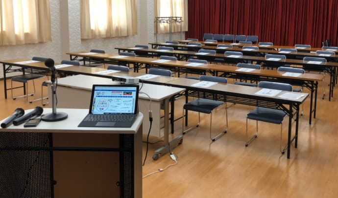 当社4Fの多目的ホールは、セミナーホールとしてご利用いただけます。 奥行 8m、幅 8.85m、天井高は3mです。 説明会・セミナー・ゴルフセミナーなど様々な催事を開催いただけます。